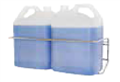 Horizontal storage and dispensing of two 5L chemical, cleaning, sanitising or food-service bottles.