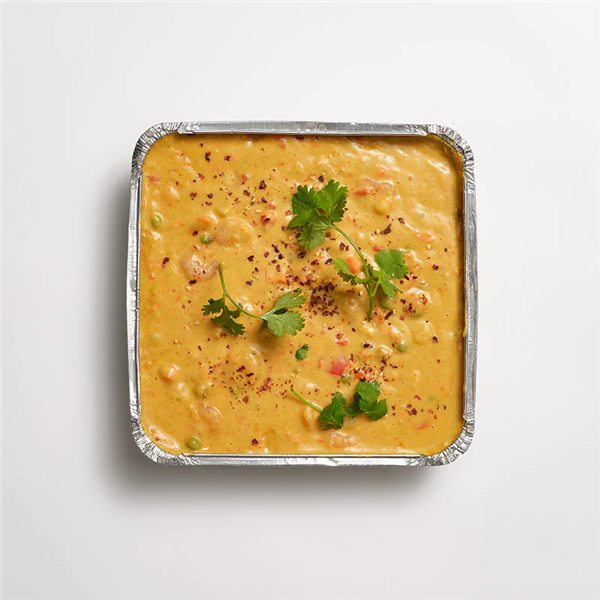 Cooked Prawns in a mild curry sauce with Asian spices and coconut cream. Item comes as frozen, packaged item. Stock image used in display. Size: 1.3kg