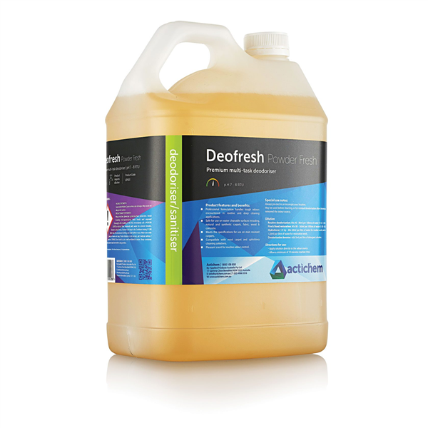 Actichem Deofresh is a professional carpet deodoriser and fragrance booster designed to neutralise tough mal-odours and leave behind a pleasant floral scent.