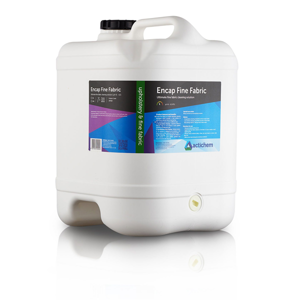 PRODUCT DESCRIPTION. Actichem Encap Fine Fabric 20L is a professional-grade upholstery and fine fabric cleaning solution formulated for the safe, effective care of delicate textiles. Ideal for use on silk, cotton, wool, and other sensitive materials, this advanced detergent utilises encapsulation technology to trap soils, prevent resoiling, and deliver a thorough clean without overwetting or residue buildup. Versatile and concentrated, Encap Fine Fabric 20L supports encapsulation, low-moisture foam, and wet cleaning methods—making it the perfect solution for professional cleaners handling high-value and fragile fabrics