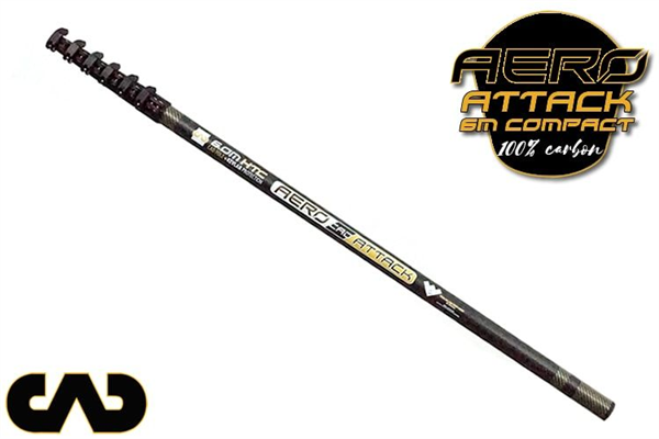 • Aero CAD Attack 6m Compact Extended length: 6m (20') · Closed length: 1.27m · Floors: 1–2 · Sections: 6 · Weight: 1.4kg · Anti-rotational: Yes · Material: 100% carbon fibre · Kevlar wear pads: Yes