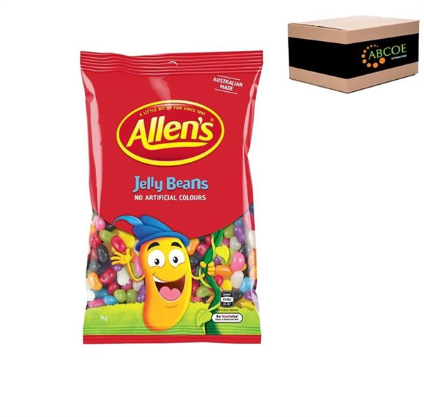 Allen's Classic Jelly Beans are the ultimate party snack. In a variety of flavours and colours, this large 1 kg bag is perfect for sharing. Enjoy the colourful variety of sweet jelly beans. No artificial colours. Australian made. Size: 6 x 1kg Bags per carton