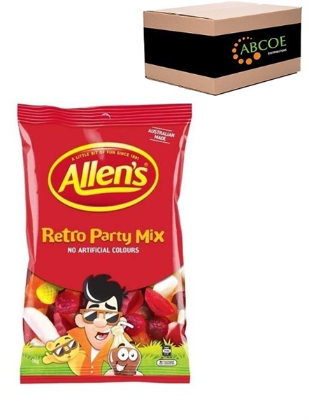 This Allen's Retro Party Mix contains bite-sized lollies, making it a perfect option when you're sharing lollies at work, preparing for a party or creating a dessert buffet. The pack contains an assortment of classic lollies including teeth, pineapples, racing cars, strawberries and cream, milk bottles, raspberries, lips, honey bears, cola bottles and retro man. No artificial colours. Australian made. Size: 6 x 1kg bags per carton