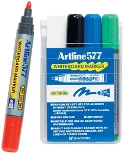 ARTLINE 577 DRY SAFE WHITEBOARD MARKERS BULLET 2.0MM WALLET 4