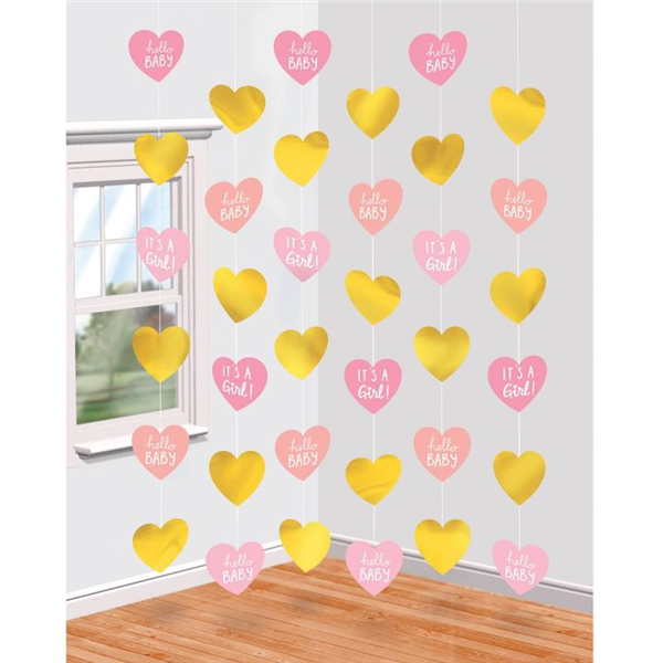 Baby Shower Girl Hanging String Decoration 6/ Pack