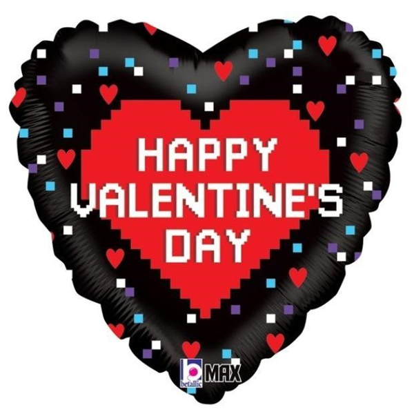 Balloon Foil 18" Valentines Pixel Heart Uninflated