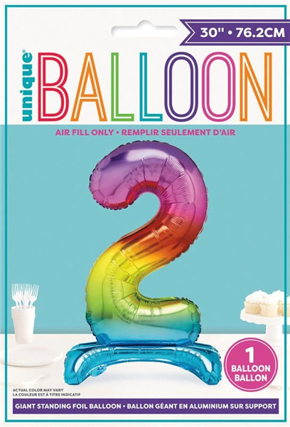 Rainbow "2" Giant Standing Air Filled Numeral Foil Balloon 76.2cm (30")