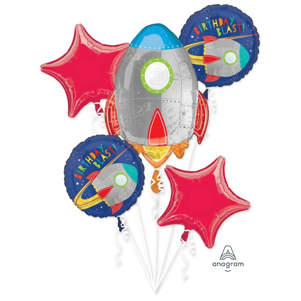 BALLOON FOIL BOUQUET BLAST OFF B/DAY 5/PK UNINFLATED