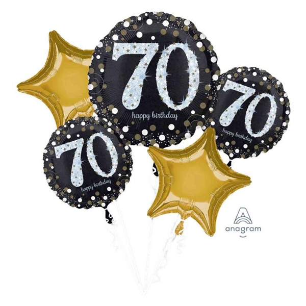 BALLOON FOIL BOUQUET SPARKLING 70TH 5/PK UNINFLATED