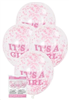 Balloons Clear Its a Girl Print with Pink Confetti 6/ Pack