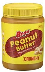 Bega Peanut Butter Crunchy. It’s as good as it gets, with Bega Peanut Butter. The all-time classic taste of roasted peanuts in a crunchy, wholesome spread. Sweet and salty, with 85% peanuts, it’s the crunch you’ll love to munch. Never Oily, Never Dry. Gluten Free. Contains Peanuts. Crunchy. Size: 780g
