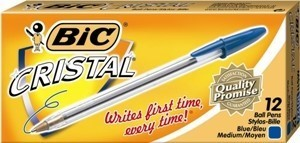 BIC CRISTAL BALLPOINT PENS MEDIUM BLUE BOX 12