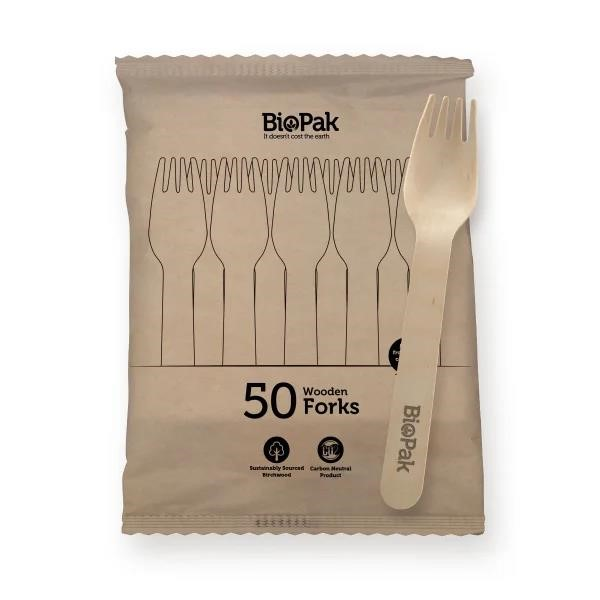 BIOPAK WOODEN FORK PACK 50/PK