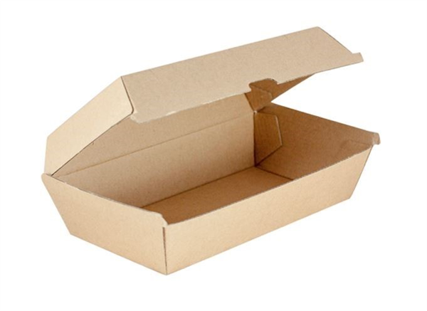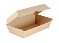 Board Snack Box Large 205Lx105Wx77D. The range is light and sturdy, designed for stand up and sit down meals at food markets. The funky, tapered design presents food in an insulated e-flute board and a favourite among food trucks and the like. Made from recyclable materials. Recyclable.