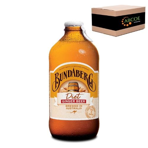 Bundaberg Ginger Beer Diet. Craft brewed over 3 days just like the original, Bundaberg Diet Ginger Beer contains less sugar and almost twice the ginger! Great for those looking for full flavour with less calories. Hold a bottle up to the light and you'll see real ginger pieces suspended throughout. Be sure to invert the bottle before opening to enjoy the full refreshing flavour. - Real Aussie Ginger - Brewed over 3 days - Australian family owned - Best enjoyed cold. Australian Made. Contains: Artificial Sweeteners, Phenylalanine, Preservatives. Size: 375ml. Quantity: 12 bottles per carton