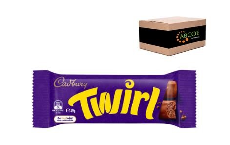 Delicious Cadbury Twirl milk chocolate swirls and curls covered with Cadbury Dairy Milk milk chocolate. Contains: Milk, soy and may contain wheat, peanuts and tree nuts. Size: 39g. Quantity: 42 pieces per carton
