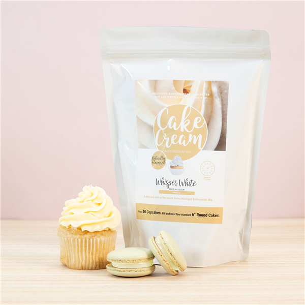 Cake Cream mix is used for making Swiss meringue buttercream and more! Swiss Meringue Buttercream is not as sweet as traditional buttercream, it’s much lighter and has a silky smooth consistency. It's fantastic for piping and will create a super smooth finish on your cakes just like a pro! Normally Swiss Meringue Buttercream involves a lot of work, taking nearly 20-30 minutes to make... Now you can make it in minutes thanks to Cake Cream!.Cake Cream mix can also be used to make Meringue Kisses, Cupcakes, Macarons, Mousse, Brownies and more!.Flavour: Vanilla. Colour: White White. Size: 800g. 1 x 800g bag will ice approximately 80 standard sized cupcakes or fill and frost 4 x 6" round cakes.