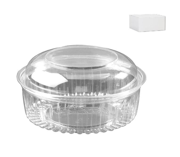 Eco-Smart Clearview Food Bowls. Hinged, Dome Lid. Clear. Size: 227 ml / 8 oz. 116 x 45 mm. Qty: 25 per sleeve. 250 per carton. Item: CA-408DL.