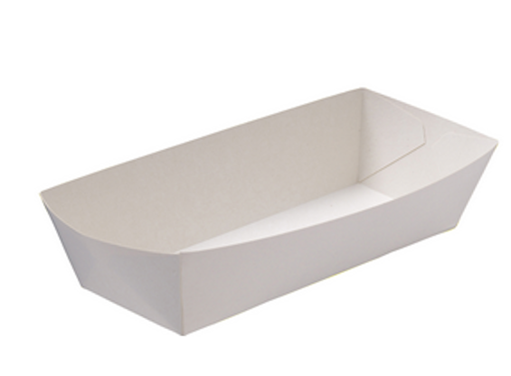 RediServe Paper Hot Dog Trays. Uncoated. White. Size: Hot Dog. 190 x 70 x 50 mm. Qty: 50 per sleeve. 250 per carton. Item: CA-HDT-W. Australian made in HACCP certified facilities. Build your brand by custom printing these products. Paper from managed plantation forests. Poly-lined to resist liquid & grease. Pre-assembled for speedy service. Tapered design for easy stacking.
