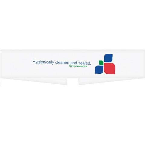 Nova Paper Toilet Seals. Printed 'Nova. White Size: Toilet Seal. 600 x 60 mm. Qty: 500 per bundle. Item: CA-NATS.