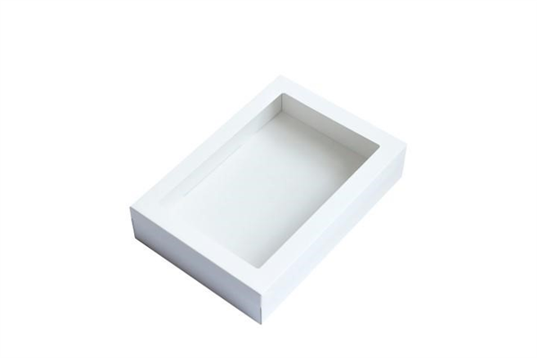 Made from white paper with a clear plastic window, these catering boxes are not only environmentally friendly but also stylish and sleek looking. Able to transport most types of food such as bread, pastries, fruit or cheese. Size: 360mm x 255mm x 80mm. Comes with lid, flat packed, customer to make up