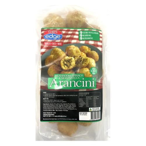 Chefs Edge Arancini Balls Mushroom, Spinach & Mozzarella Pouch. No added MSG. No preservatives. Suitable for vegetarians. Servings: Approx 16 Arancini Balls per pack. Size: 400g