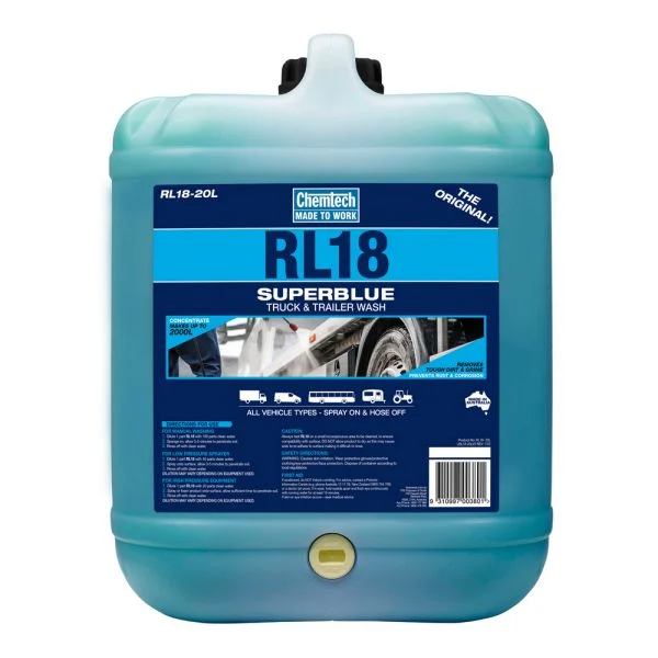 • Chemtech RL18 Superblue Truck Wash 20L is a powerful heavy-duty cleaner formulated for washing trucks, trailers and large vehicles.