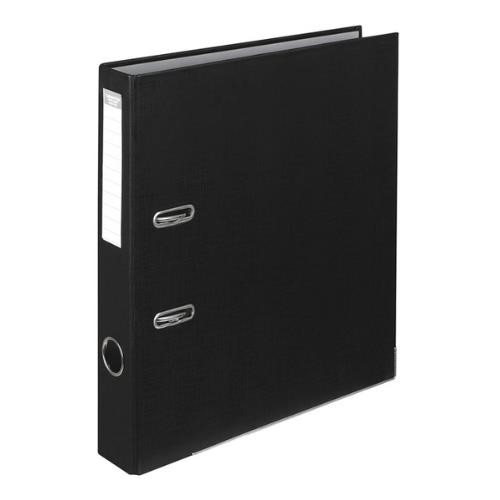 ColourHide Half Arch File. 50mm capacity with locking mechanism to keep pages secure. Handy case hole enables you to easily pull it down off a shelf. Locking lever arch will keep all pages in place. Moisture resistant and PVC free. Light and tough. Contrast lining and spine label. Size: A4. Colour: Black