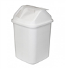 - The white polypropylene body provides strength and easy-clean performance, while the swing-top lid ensures quick and hygienic disposal.