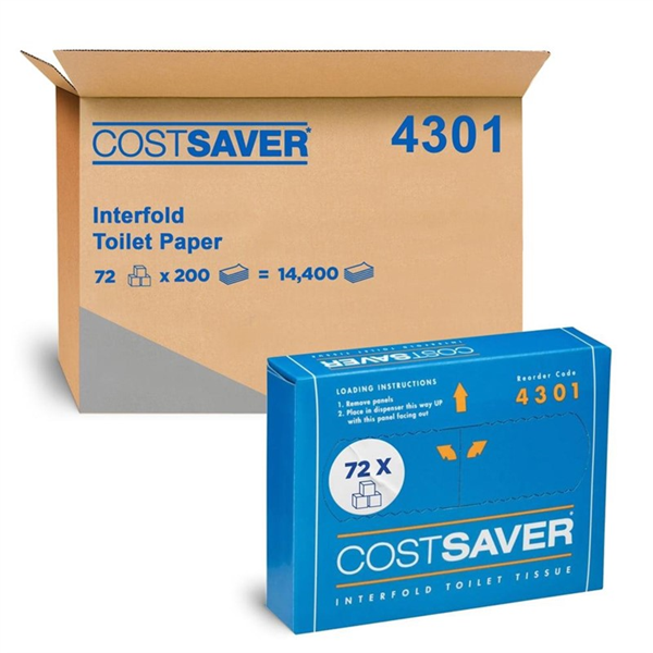 Costsaver Toilet Tissue Interfold 1Ply 200SH 72/CTN