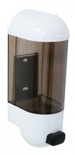 . 600ml capacity ideal for compact spaces. Amber transparent body for easy refill monitoring. Slim design saves wall space. Durable plastic construction for long-lasting use. Simple to install and maintain