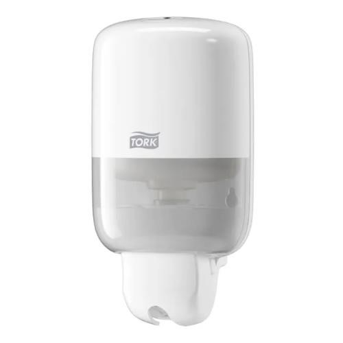 . Compact design suitable for small or limited spaces. Clear window for easy refill monitoring. Easy-to-refill system saves maintenance time. Compatible with multiple Tork Mini soap refills. Sustainable refillable design reduces waste. Clean white finish suits any environment