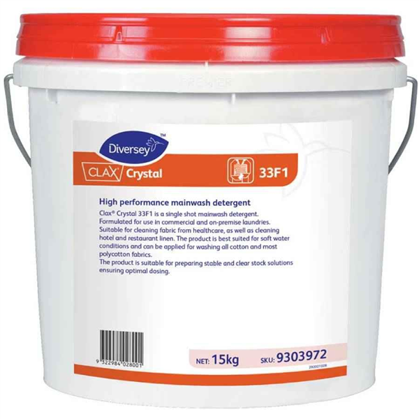 Diversey Clax Crystal 33F51 Laundry Powder 15kg is a high-performance detergent formulated for commercial and institutional laundry operations.