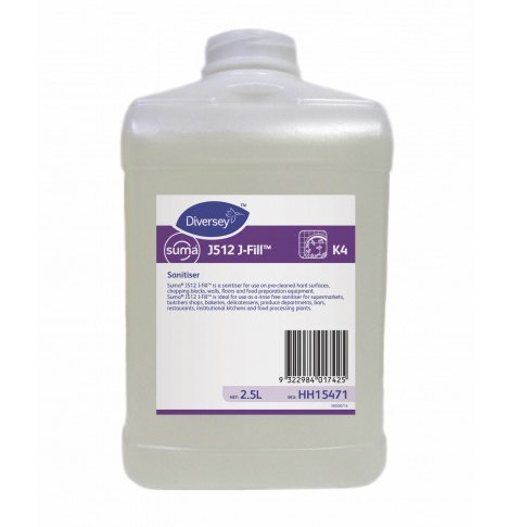 This Diversey JFill J512 Surface Sanitiser is purposely designed to be used in food preparation areas and on equipment and utensils. The Diversey JFill Surface Sanitiser is created to be used water free, simply spray & wipe or mop and leave to dry. Great for sanitising any washable hard surface. Perfume free.