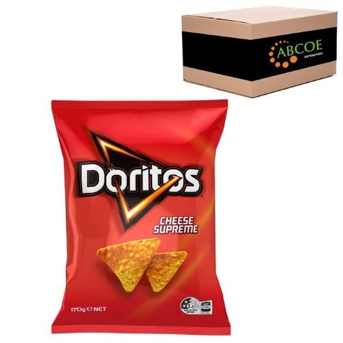 . Bold Cheese Snacks with Unmistakable Crunch There’s nothing quite like the cheesy tooth-rattling crunch of Doritos Cheese Supreme corn chips. These high-quality corn tortilla chips are exploding with a bold cheesy flavour that’s sure to pack a flavourful punch. Made in Australia. Size: 170G. Quantity: 12 bags. Perfect for Sporting Events