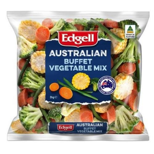 Edgell Buffet Mix. Australian grown froze vegetables wit cut carrots, mini corn on the cob, broccoli florets and whole beans. Size: 2kg