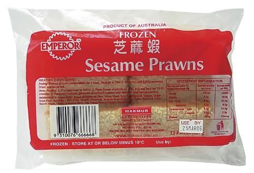 Minced prawns on top of bread covered with sesame seeds. Suitable for oven heating or shallow fry. Ideal for snacks, finger foods and appetiser. 12 pieces per 320g pack.