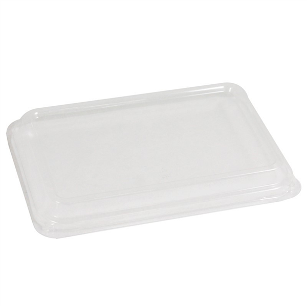 Made from PET, which is 100% recyclable, the Envirochoice Lid provides perfect clarity when covering cold foods like salads, wraps, tacos and desserts. Please note this lid is not suitable for hot foods or microwaving. Lid is sold separately to the containers. Size: 183 x 128 x 20(H)mm