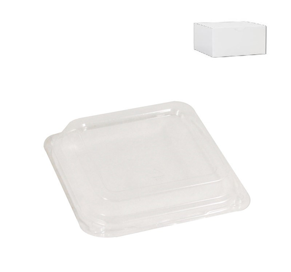 Made from PET, which is 100% recyclable, the Envirochoice Lid provides perfect clarity when covering cold foods like salads, wraps, tacos and desserts. Please note this lid is not suitable for hot foods or microwaving. Lid is sold separately to the containers. Size: 95 x 95 x 20(H)mm