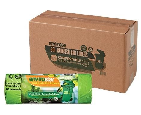 Envirostar Compostable Bin Liner – 80L capacity, designed for large waste bins.