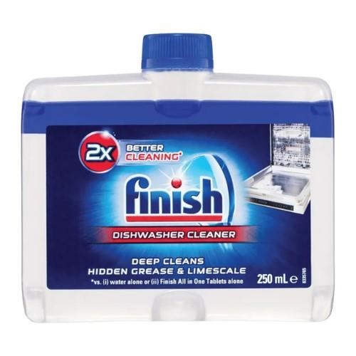 Finish Dishwasher Cleaner. This Finish Dishwasher Cleaner can be used to intensively clean your dishwasher including the spray arm, filters and drains. The thick formula cuts through grime, limescale and eliminates grease, leaving your dishwasher clean for the next use. Give your dishwasher and all its vital parts a thorough clean with this cleaner. It has a coloured layer to eliminate grease, grime and limescale. It has a fresh scent that makes your dishwasher smell pleasant. Size: 250ml