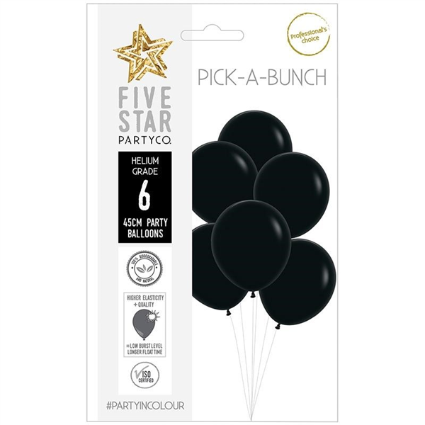 Five Star Balloons 45Cm Matte Black 6/Pk