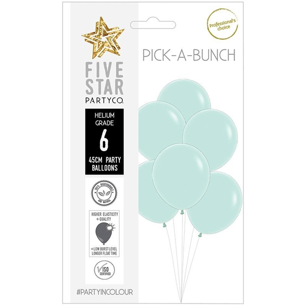 Five Star Balloons 45Cm Pastel Green 6/Pk