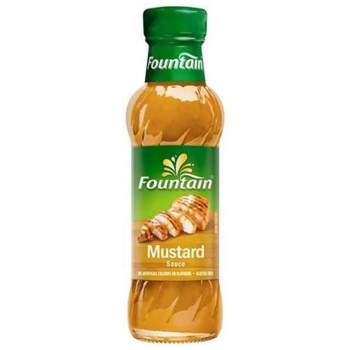 Fountain Mustard Sauce. Bring a flavour hit to the dinner table with Fountain® Mustard Sauce. It's the perfect sauce for sandwiches, burgers or even cheese toasties. Use as a marinade for chicken. Great sauce for hot dogs, sandwiches and burgers. Contains: Peanuts, Soy, Wheat and Gluten. Size: 250ml