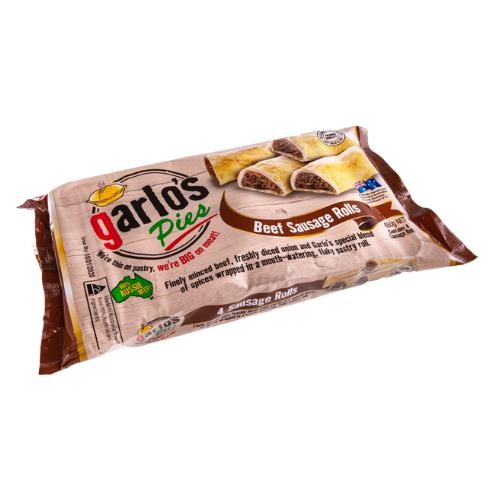 Garlos Pies Beef Sausage Rolls 480g 4/PK
