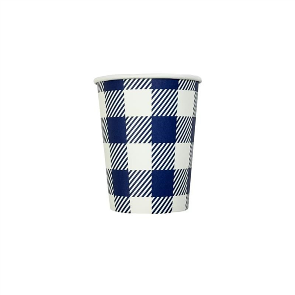 Gingham Blue Paper Cup 20pk. Material: Paper. Size: 20pk. Colour: Blue and White. Quantity: 20pk