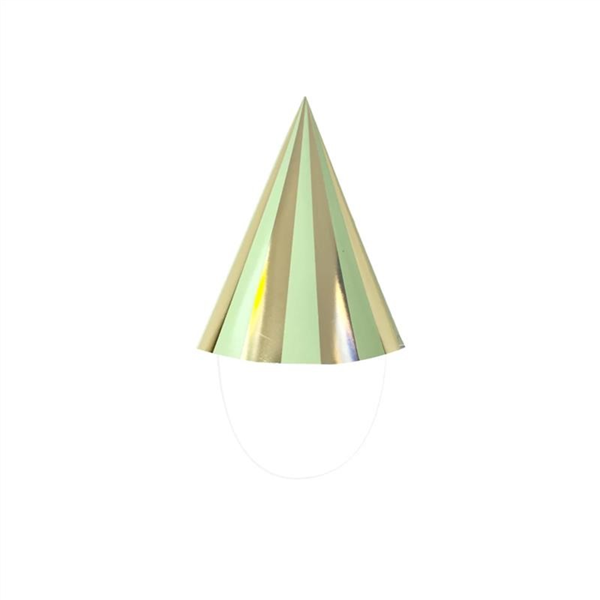 Gingham Green Party Hat 6pk. Material: Paper. Size: 16x10cm. Colour: Green and Gold. Quantity: 6pk