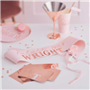Celebrate your Hens with the perfect rose gold custom sash!. Measurements: 77cm (W) x 10cm (H). Colour: Rose gold. Material: Paper (durable). Ocassion: Hens night. Includes 3 of each letter