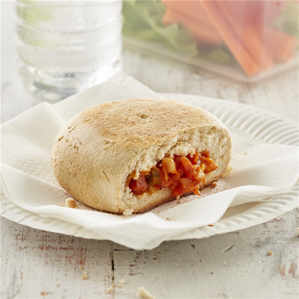 Inghams Pizza Roundas. Oven baked bread roll with a delicious pizza filling. No artificial colours or flavours. Approved for Schools. Size: 130g