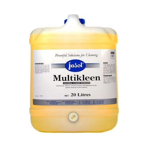PRODUCT DESCRIPTION. Multikleen 20L is a powerful, cost-effective universal cleaner and degreaser formulated with non-flammable solvents, water conditioners, and synthetic detergents to tackle the toughest grime, grease, and dirt. Ideal for industrial, commercial, and institutional use, this versatile cleaner works on a wide variety of surfaces while remaining safe for daily cleaning routines. Its water-soluble formula allows for easy dilution and application, making it a practical choice for both routine and heavy-duty tasks
